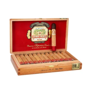 Arturo Fuente Anejo No. 50 boasts a rare Maduro wrapper aged in Cognac barrels, blending Dominican vintage tobaccos for a rich, earthy flavour with a smooth finish.