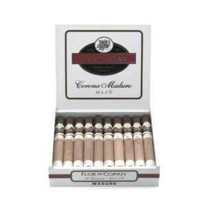 Indulge in the bold, aromatic Flor De Copan Maduro Corona, a full-bodied Honduran cigar with rich, complex aromas of conifer and chocolate for an authentic smoking experience.