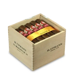 Discover the H. Upmann Magnum 54, a silky Colorado cape cigar with notes of roasted coffee, cedar, toasted almonds, and vanilla. A harmonious blend with a spicy finish.