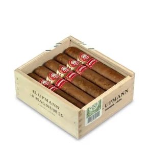 Discover the H. Upmann Magnum 54, a silky Colorado cape cigar with notes of roasted coffee, cedar, toasted almonds, and vanilla. A harmonious blend with a spicy finish.