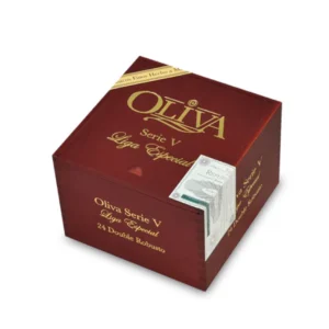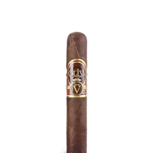 Oliva Serie V Double Robusto, in a box of 24, features an oily Habano Sun Grown wrapper and aged Nicaraguan ligero. Enjoy its full-bodied profile with coffee, spice, and dark chocolate flavours.
