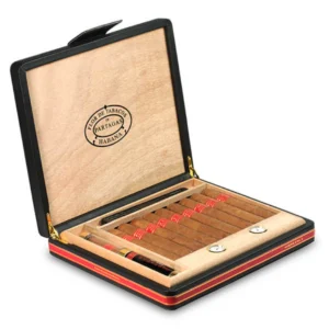 The Partagas Serie E No. 2 Travel Humidor 2015, limited to 5,000 units, contains 10 cigars in a leather humidor with humidifier, offering rich, woody, earthy flavors.
