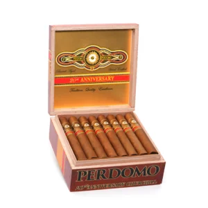 Perdomo 20th Anniversary Connecticut has 8-year-old Ecuadorian wrappers aged in bourbon barrels, offering a creamy smoke with hints of honey, spice, and a complex finish.