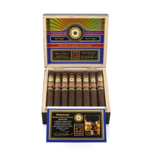 Perdomo Double Aged 12-Year Vintage Maduro has a rich, complex smoke with bourbon barrel-aged Nicaraguan wrappers and fillers, with dark chocolate, licorice, and coffee notes.