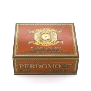 Perdomo Nicaragua Bourbon Barrel-Aged Connecticut Gordo offers a rich, creamy smoke with an Ecuadorian wrapper aged in bourbon barrels, featuring caramel and cedar notes.