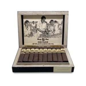 Rocky Patel Decade Robusto: Celebrating 10 years with a rare Sumatran wrapper and a secret blend of premium tobaccos. Complex, balanced, and elegant