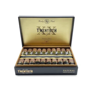 Rocky Patel Edge 20th Anniversary Robusto: a medium-bodied masterpiece with 10-year aged Ecuadorian Sumatra wrapper and premium Nicaragua/Honduras fillers.