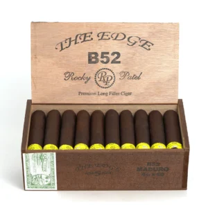 Rocky Patel The Edge B-52 Maduro: Dark, chocolatey Maduro wrapper delivers a bold, flavourful smoke with cocoa, pepper, and smoky cedar notes. Smooth, consistent burn.